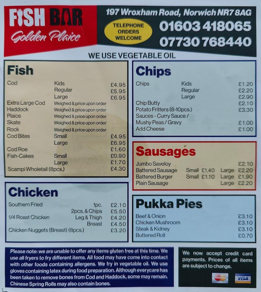 The establishment prides itself on serving freshly cooked meals to order, emphasizing quality and flavor. Besides fish and chips, the diverse menu encompasses dishes like battered sausages, chicken nuggets, and Pukka pies, broadening its appeal. The staff are known for their friendly service, always ready to offer recommendations and assist with your order. Plus, with cash-only payments, it embodies a back-to-basics charm. Whether you dine in or take away, Golden Plaice offers a casual, enjoyable dining experience.